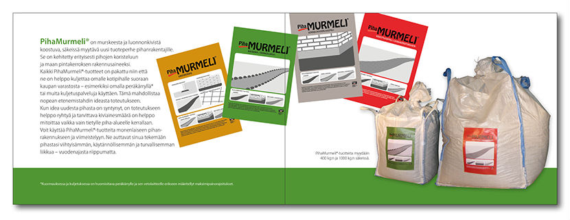 Tarjoamme eri murskelajikkeita myös valmiiksi pakattuina 400 kg ja 1000 kg piensäkkeihin. Lisätietoja PihaMurmeli-tuoteperheestä löydät täältä.